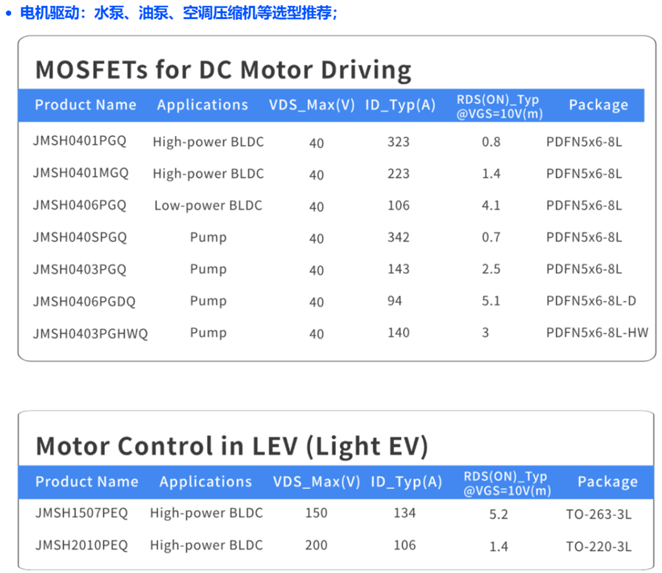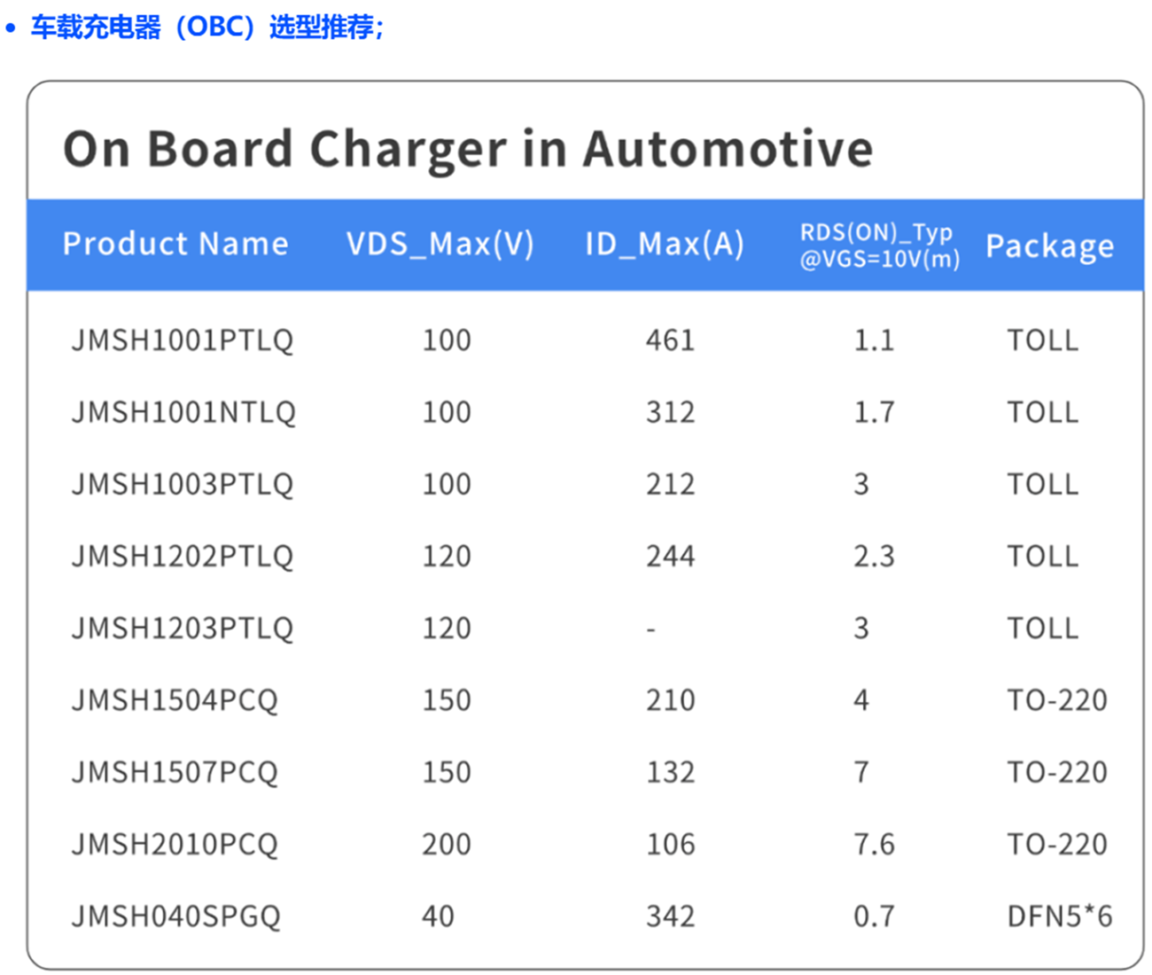 目前,JJM 已成功实现 200多款 SGT车规产品的量产,并持续发力,在 LFPAK 和 Top – Cooling 封装方面积极布局,不断开发新品,以创新引领行业发展。