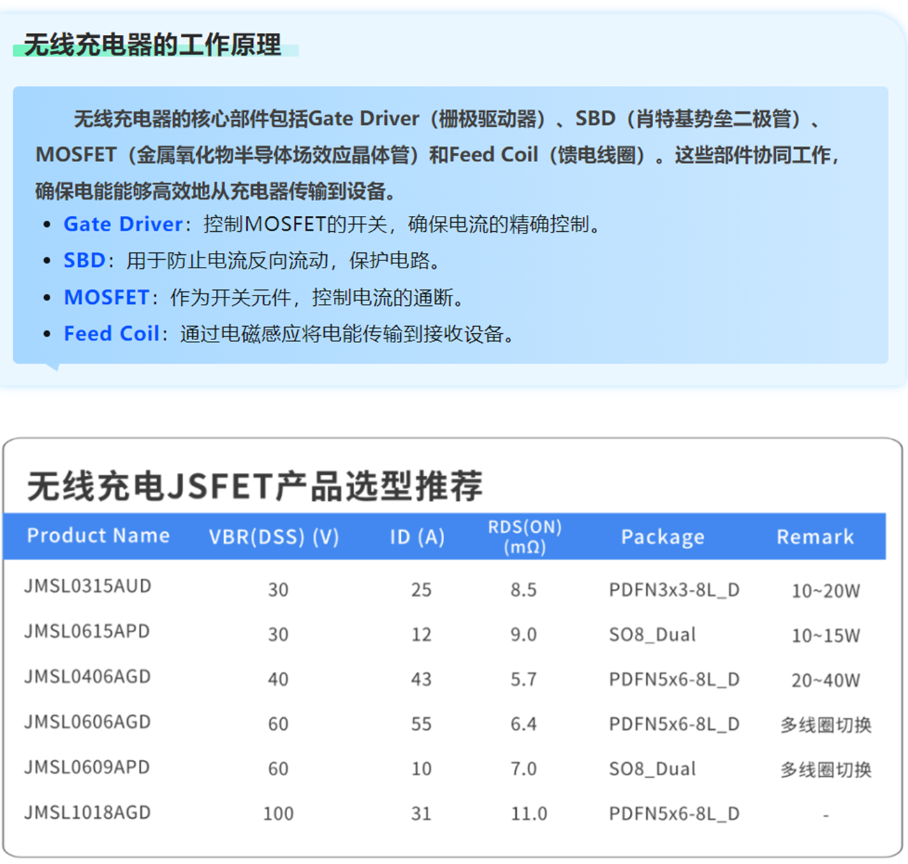 JMSL0315ARD 凭借其紧凑型设计、优异的电气性能和可控的封装技术,成为无线充电应用中高性能 MOSFET 的理想选择。
