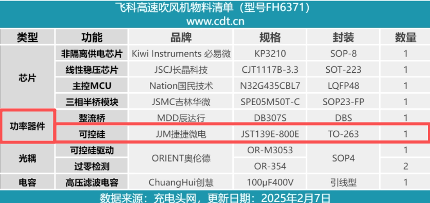 在颜值与性能兼具的个护赛道,一场关于「风」的革命正在发生。国产品牌飞科推出的高速吹风机FH6371,凭借11万转无刷电机、六种风温风模式组合,迅速圈粉新一代用户。拆解发现,在这款产品的智能电力调控核心中,快盈VIII微电可控硅JST139E-800E如同整个电路的“智能指挥官”,精准调度每一股电流,安静却强大地支撑着整个吹风机的流畅运转。
